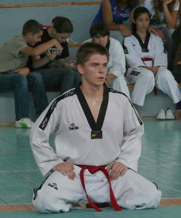 Любомир на тренировка по таекуон-до