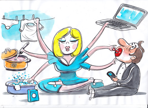 докато жените шетат, но пък имат огнище, около което да се изсушат,